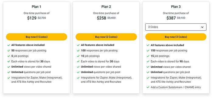 The Hirevire Lifetime Deal is designed to provide recruiters with a powerful tool at an unbeatable price. It offers three main plans: